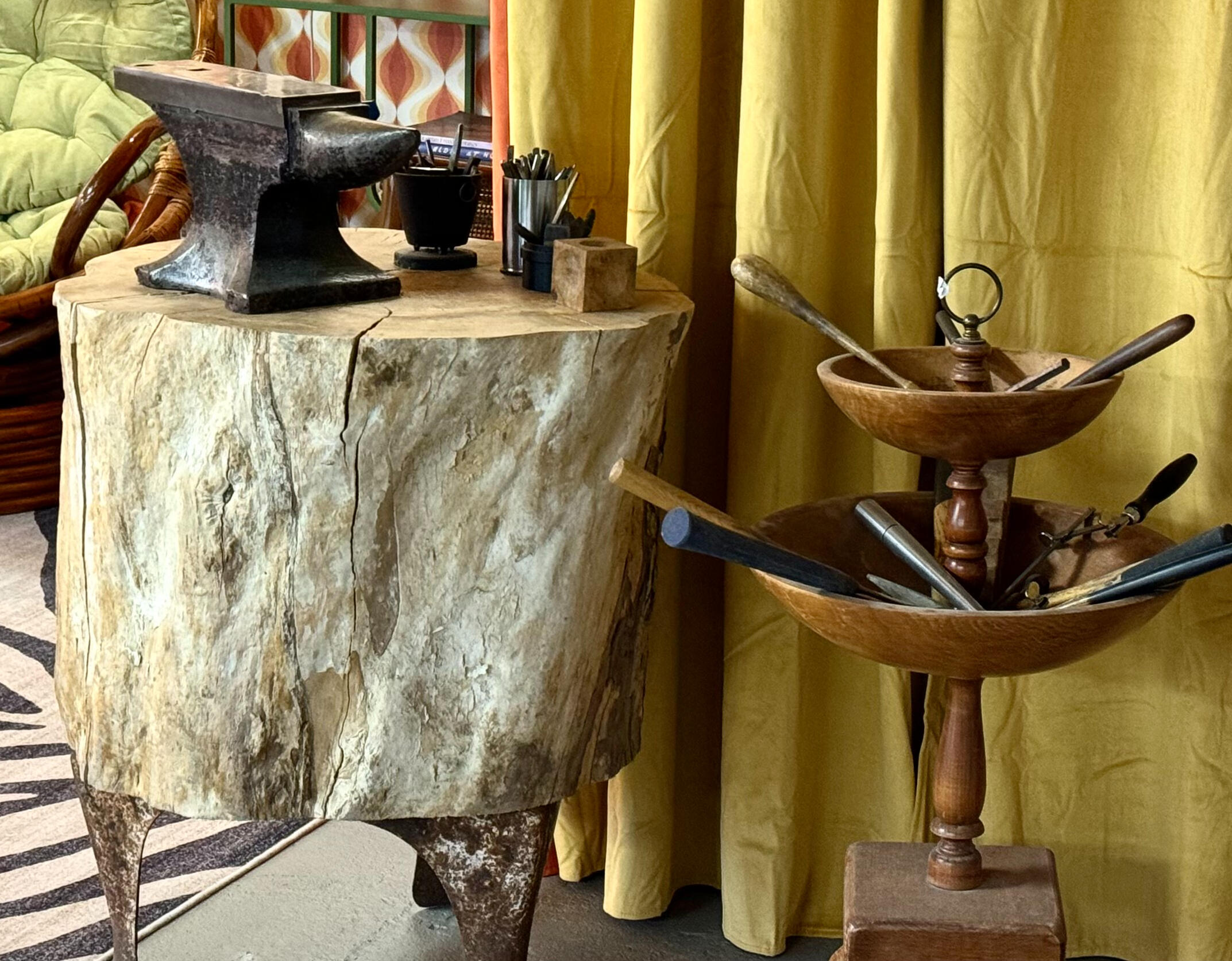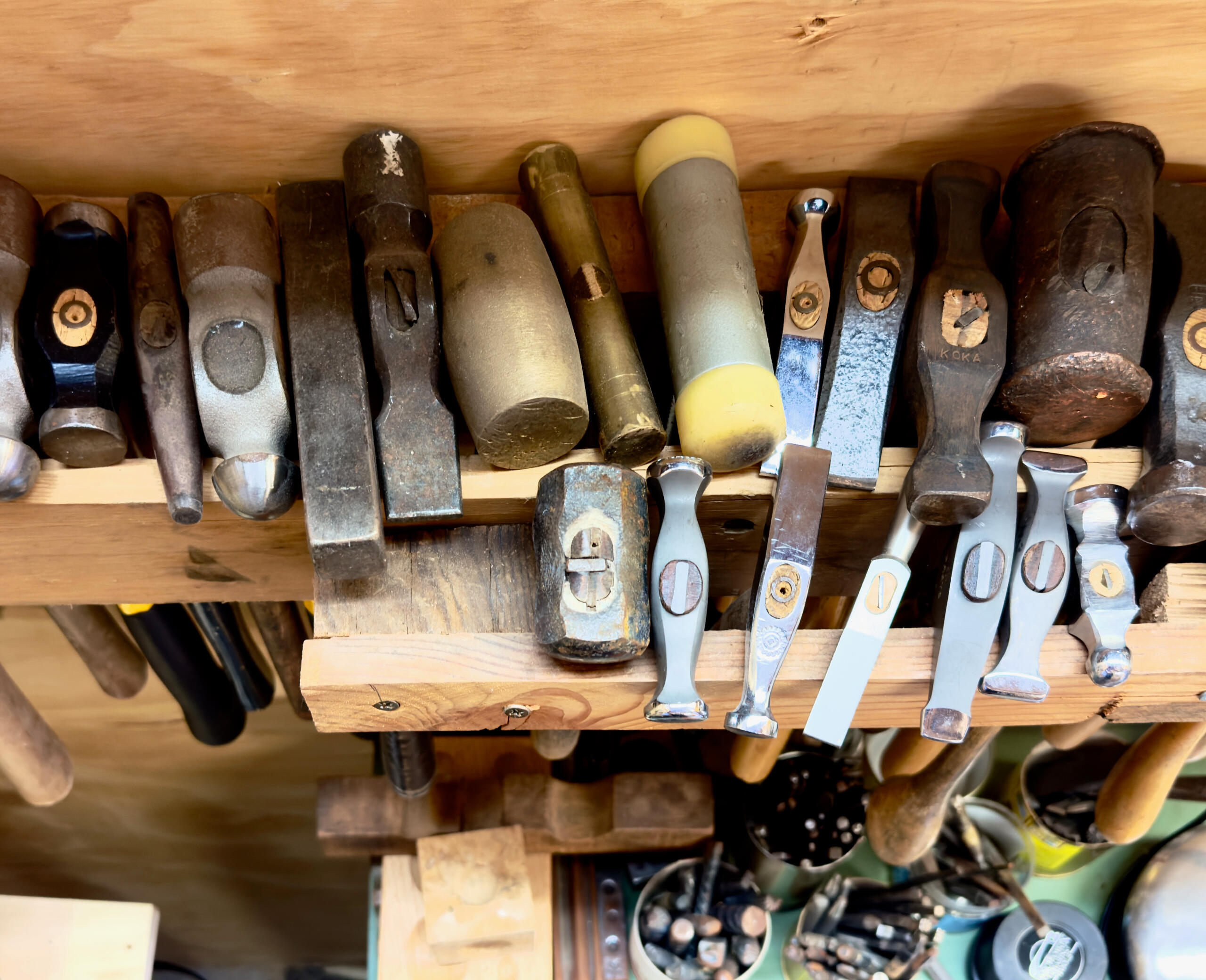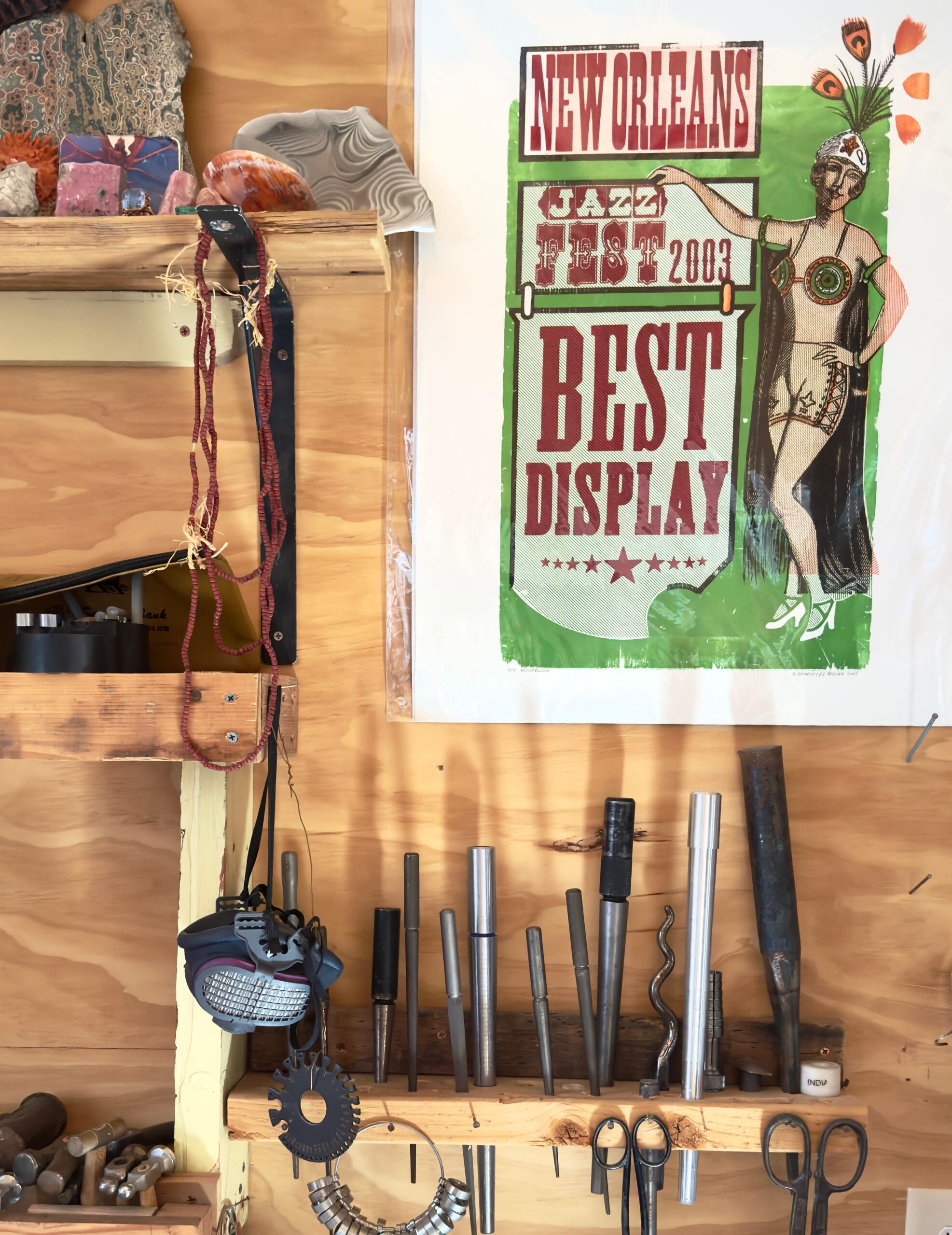 My studio is a well equipped space. It has a hip vibe and is located in the gulch district of Bisbee a block down from all the bars and restaurants. Small class size 4 students per class allowing individual attention. Each student has their own workbench, flex shaft, hand tools, etc. There is a soldering station with ventilation. There is an anvil with loads of hammers, stamps and other forming tools. I have an amazing collection of gemstones for you to choose from for your project.