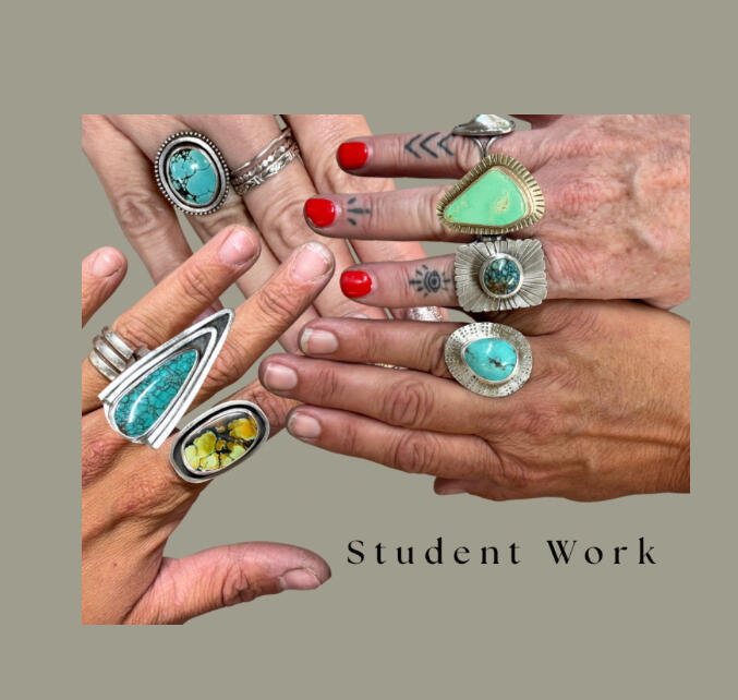 My studio is a well equipped space. It has a hip vibe and is located in the gulch district of Bisbee a block down from all the bars and restaurants. Small class size 3-4 students per class allowing individual attention. Each student has their own workbench, flex shaft, hand tools, etc. There is a soldering station with ventilation. There is an anvil with loads of hammers, stamps and other forming tools. I have an amazing collection of gemstones for you to choose from for your project.